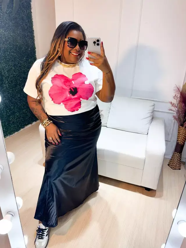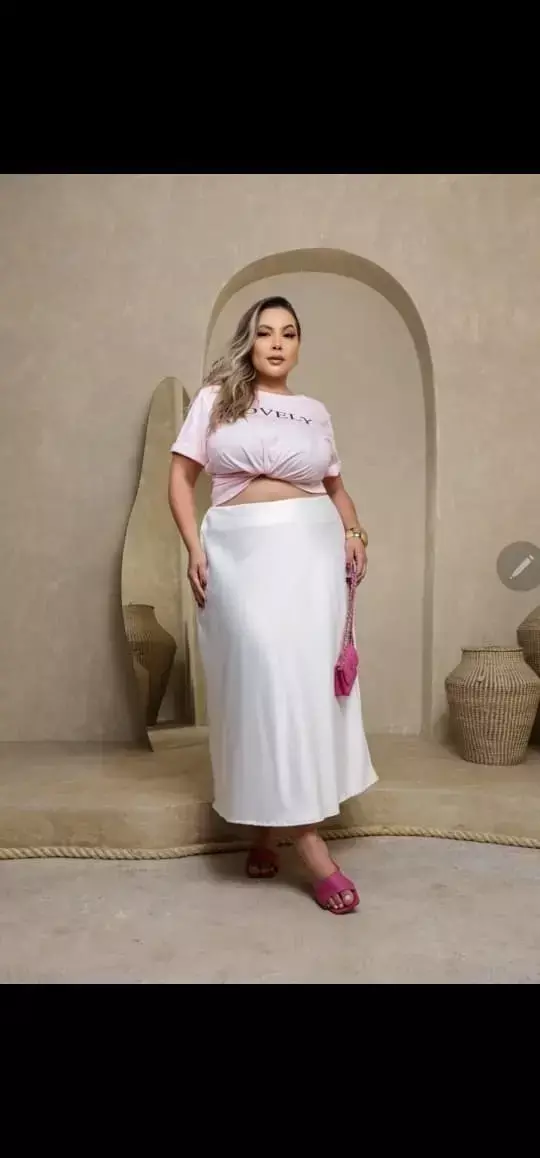 Esta Saia Plus Size feito no tecido de cetim, que é um tecido leve, fluido, com elastano e bem confortável!
