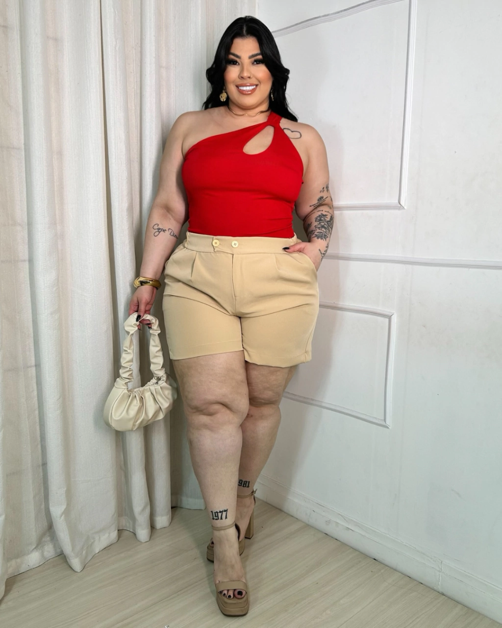 Este Short Plus Size feito no tecido de alfaiataria, que é um tecido macio, sem elastano e bem confortável!