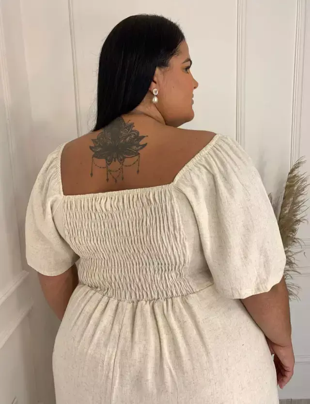 Este Vestido Plus Size feito no tecido de linho premium, que é um tecido macio, sem elastano e bem confortável!